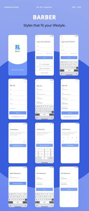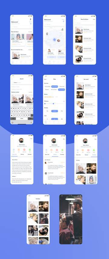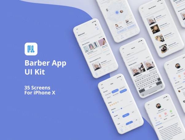 在Adobe XD中设计的Barber App UI Kit。自定义40个基于移动矢量的最小屏幕,以适应您的下一个基于Barber App的应用程序。