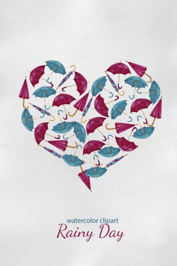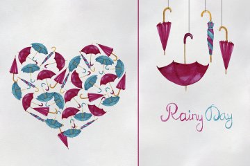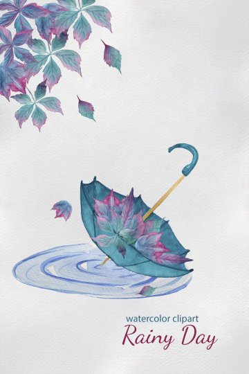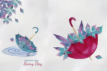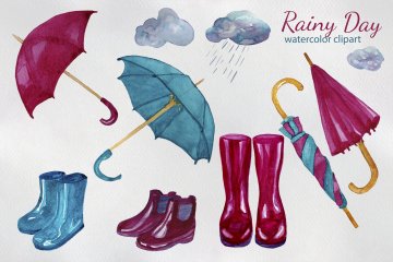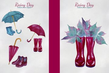 图穷联素材库 » 夏季水彩手绘雨伞雨靴PNG剪贴画素材 Rainy Day W