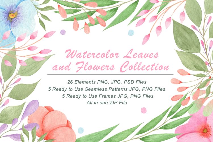 水彩手绘花卉插画素材 Watercolor Flowers