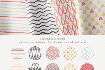 3、5个具有透明背景的无缝图案PNG + 5个具有彩色背景的无缝图案JPG