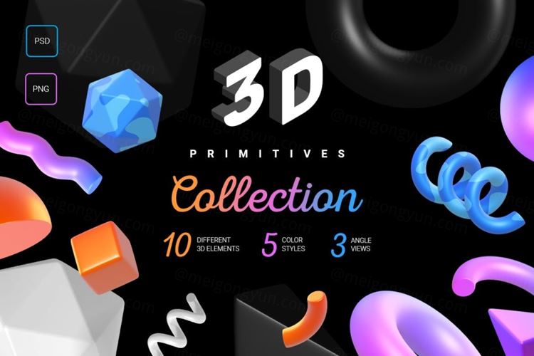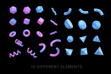 3d图元集合将使您的设计看起来很棒。每个项目都有五种颜色和三个角度。套3d抽象多彩形状是两种格式:PNG和PSD。您可以使用此设置对网站,登录页面,演示文稿等进行专业设计。