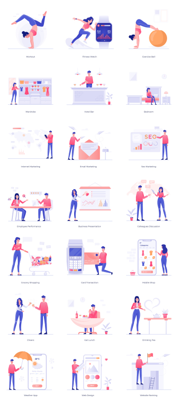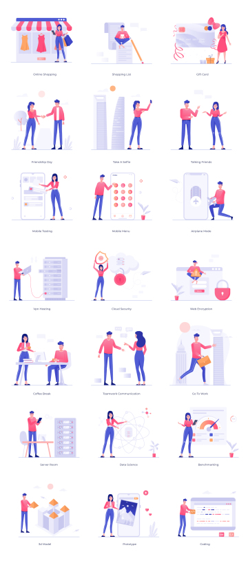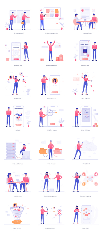 超过108种Web UI插画人物场景矢量素材 100+ Ch