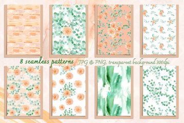 -8个水彩无缝图案(8个带有白色背景+ 8个带有其他彩色背景JPG,300dpi,4000x4000 px,14\\\'x14\\\')