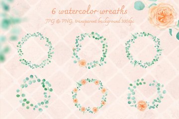 -6个水彩花圈(JPG,PNG 300dpi,3900x3900 px,13\\\'x13\\\')