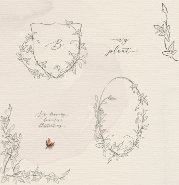 优雅的素描线稿春藤植物插画素材 Line drawing I