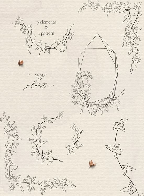 图穷联素材库 » 优雅的素描线稿春藤植物插画素材 Line drawing I