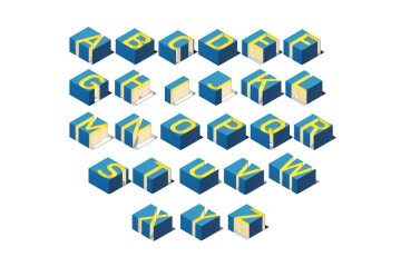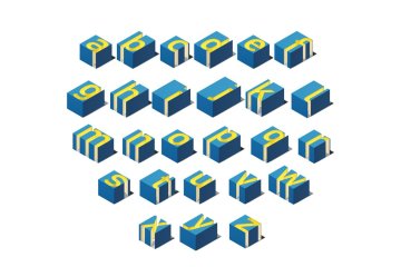 图穷联素材库 » 立体几何3D盒子数据集等距视角字体PSD模板 Cube 3d