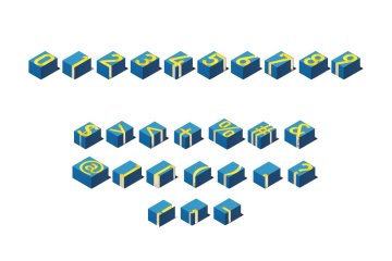 立体几何3D盒子数据集等距视角字体PSD模板 Cube 3d