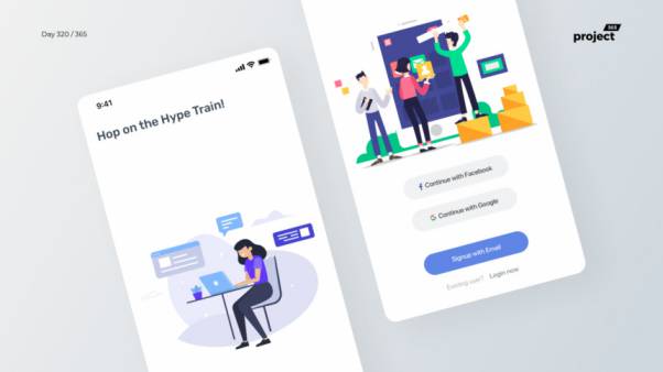 图穷联素材库 » 注册登录界面插画概念设计 Mobile Login Pages 每日UI源文件