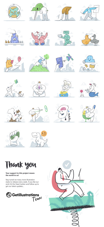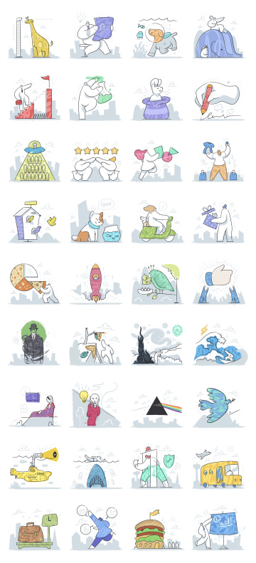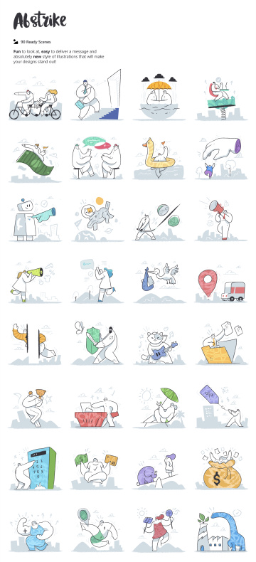 图穷联素材库 » 90款独特的手绘抽象插画人物素材 Abstrike illu