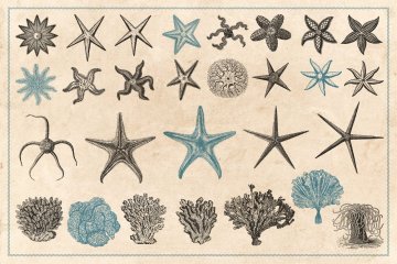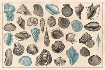 图穷联素材库 » 154张手绘复古海洋鱼类贝壳珊瑚等生物插画 Vintage