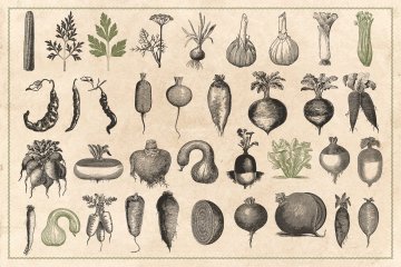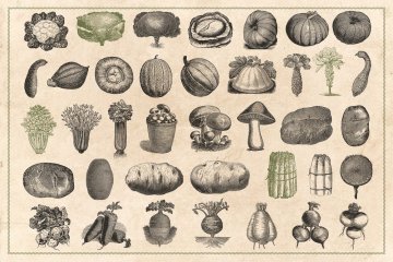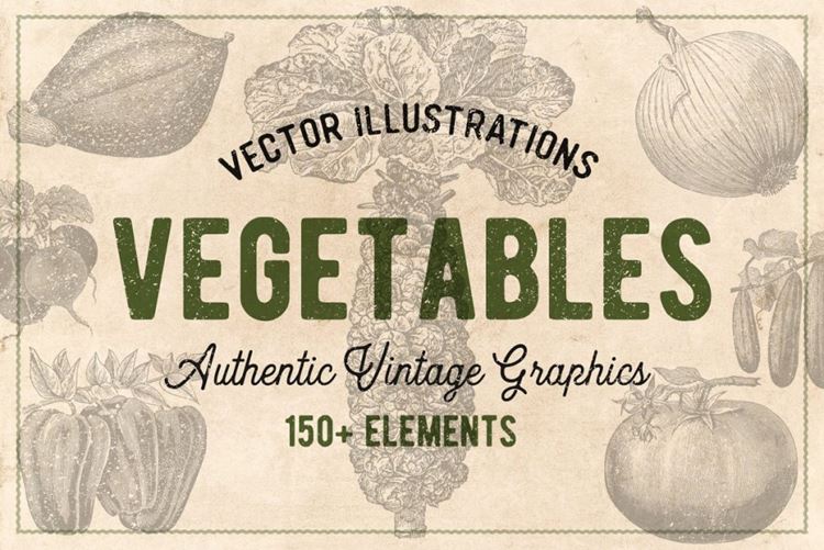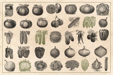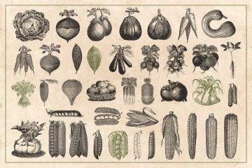 图穷联素材库 » 150张手绘复古蔬菜草药雕刻剪贴画矢量插画素材 Vintag