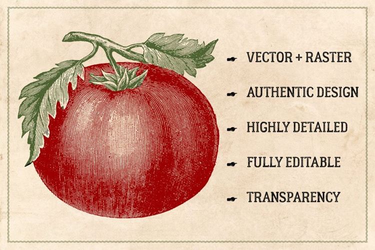 此包装中包含150种蔬菜和草药的古董雕刻品,这些雕刻品是从旧的印刷广告,杂志,种子目录,百科全书和其他原始资料中修复的;仔细地数字化并转换成可用的矢量图形。它们非常详细,非常适合徽标设计和品牌目的,图案,海报,传单,餐厅菜单以及您能想到的所有其他内容。您可以根据需要自由缩放和重新着色。