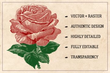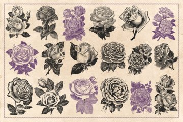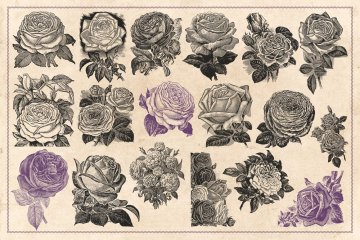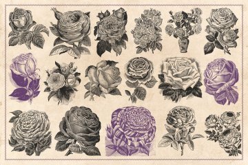 此包装包含从旧印刷广告,杂志,种子目录,百科全书和其他原始资料中回收的70张高分辨率玫瑰的古董雕刻;仔细地数字化并转换成可用的矢量图形。它们非常详细,非常适合徽标设计和品牌目的,图案,海报,传单,邀请卡以及您能想到的所有其他内容。您可以根据需要自由缩放和重新着色。