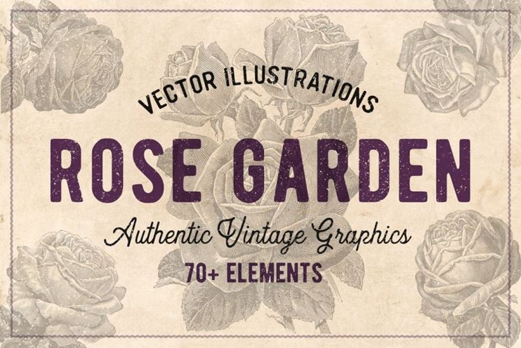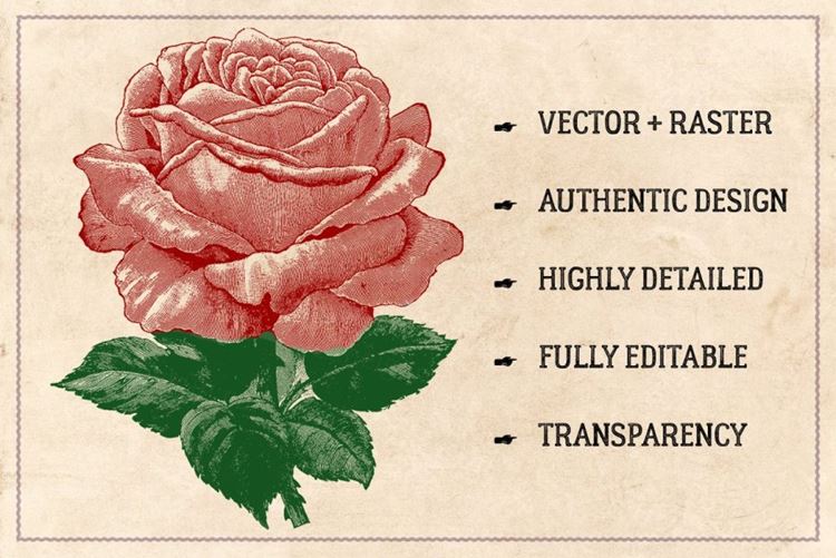 70幅手绘复古玫瑰花矢量插画素材 Vintage Rose