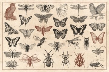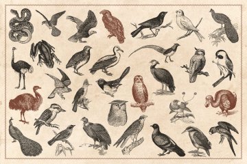图穷联素材库 » 176幅手绘复古野生动物爬行动物鸟类昆虫蜘蛛等动物矢量插画