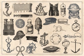 图穷联素材库 » 57幅手绘复古风航海元素矢量插画素材 Vintage Nau