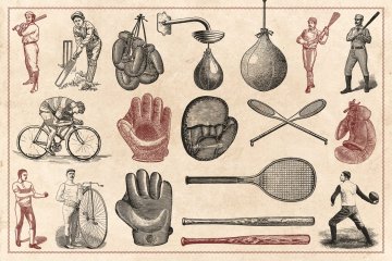图穷联素材库 » 42幅手绘复古风运动人物运动器材矢量插画素材 Vintage