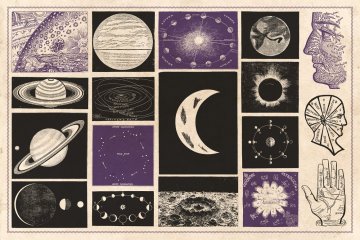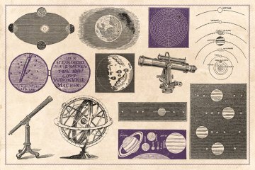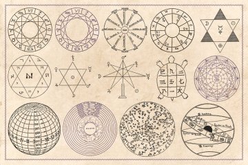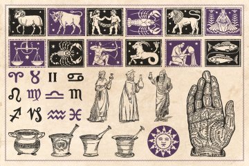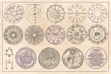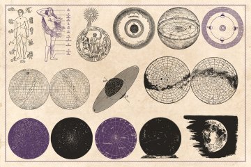 图穷联素材库 » 190张复古风炼金术占星术天文学手相术手绘插画素材 Vint