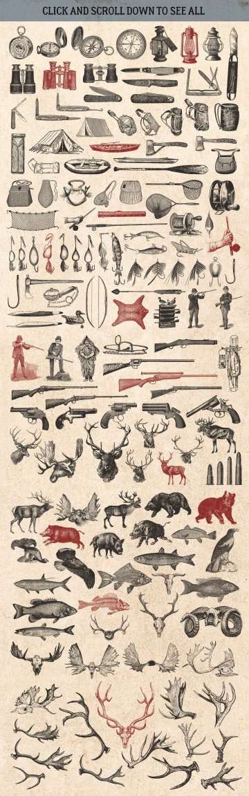 150个老式狩猎和捕鱼插图-https://crmrkt.com/0oklr(12美元)