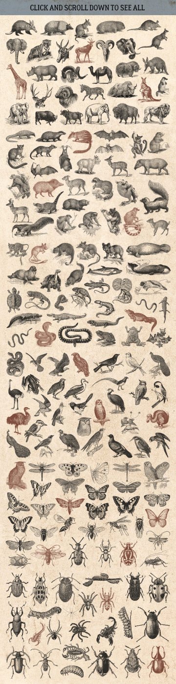 我们很高兴地介绍这个不断发展的捆绑包,目前包括来自21个图形包的2405个原始复古插图。它们已经从许多旧书,杂志,目录和印刷广告中得到了挽救,经过仔细地数字化,改进并变成了可缩放的矢量图形。其中大多数都非常详细,非常适合徽标设计和品牌目的,图案,海报,文具以及您能想到的所有其他内容。您可以根据需要自由缩放和着色它们。
