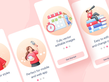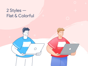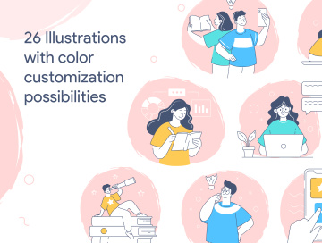 在此程序包中,您将找到26种采用扁平和炫彩风格的独特场景。您可以单击几下,使用Sketch,Figma和Adobe Illustrator中的自动更新的全局调色板来更改颜色。