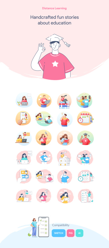 此插图包非常适合在线课程,教育计划和学校。