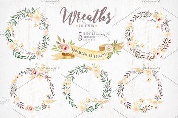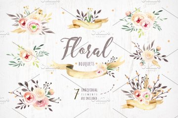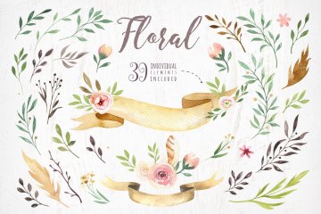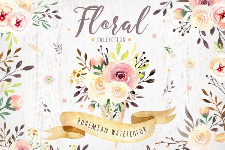 图穷联素材库 » 高质量水彩手绘波西米亚风格花卉剪贴画合辑 Bohemian