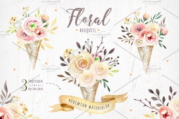 高质量水彩手绘波西米亚风格花卉剪贴画合辑 Bohemian
