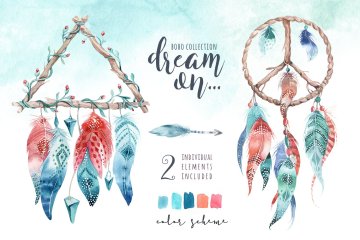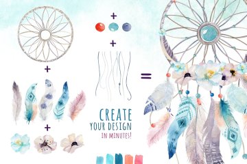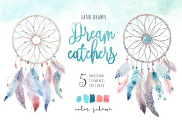 水彩追梦者III https://creativemarket.com/Kris_peace/946576-30-off-Watercolor-dreamcatcher-III