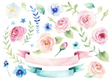 25种花卉和花卉元素(300 dpi,PNG,透明背景)