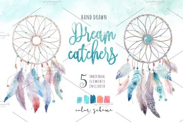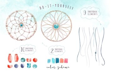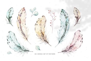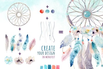高质量波西米亚风格手绘追梦者花卉花束元素素材合辑 Water