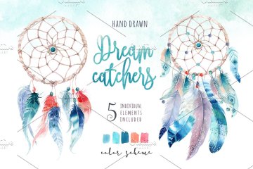 这是一组高质量的手绘水彩追梦者和花束。波西米亚风格。DIY,结婚请柬,贺卡,报价,博客,海报等的理想图形。
