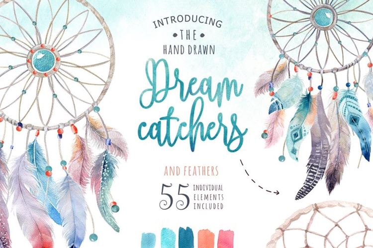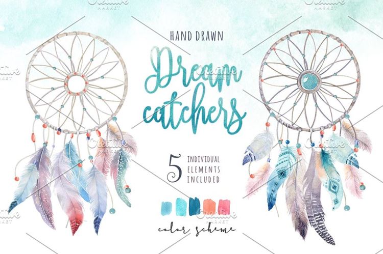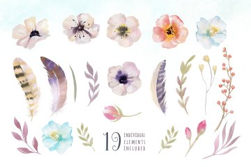 图穷联素材库 » 高质量波西米亚风格手绘追梦者花卉花束元素素材合辑 Water