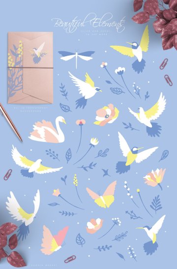 图穷联素材库 » 清新自然的春季蜂鸟花卉女性品牌设计素材合辑包 Confia