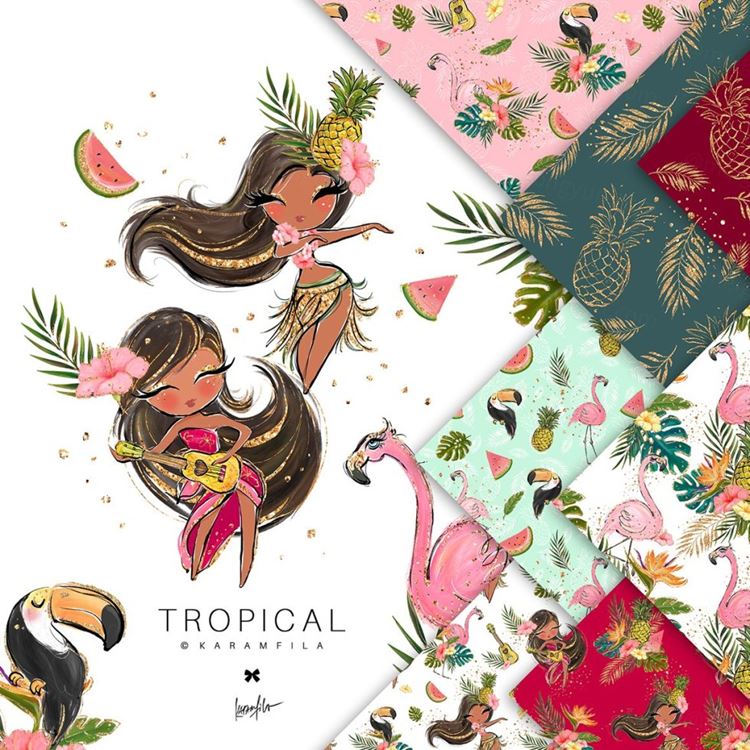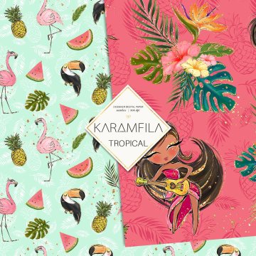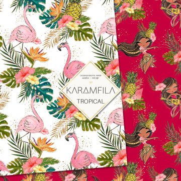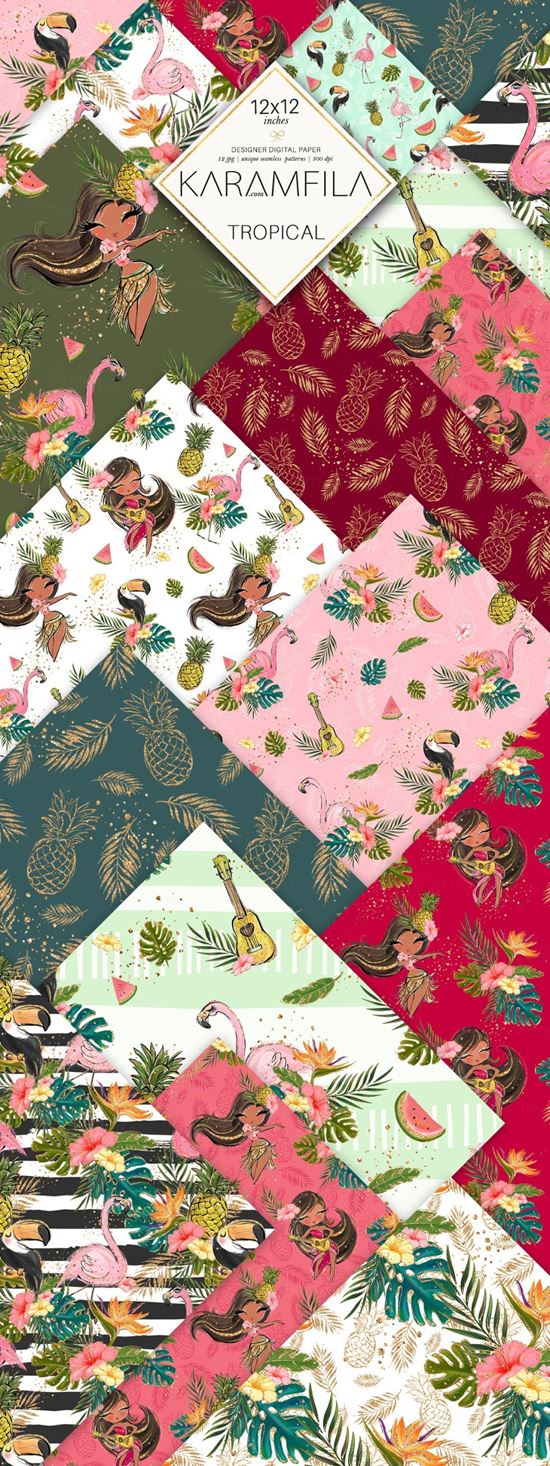 Karamfilas的热带数码纸,闪光的火烈鸟图案,热带的夏季计划贴纸,异国情调的鸟类定制面料,草裙舞女郎表面图案。可将它们用于贴纸,计划器封面,仪表板,iPhone壁纸,剪贴簿垫,按需打印任何表面,物品和织物等。