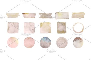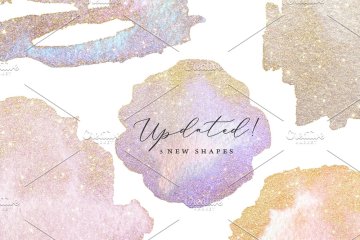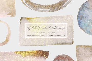 手绘水彩黄金金粉形状素材 Gold Touched Wate