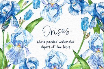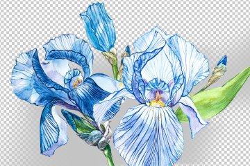 水彩手绘鸢尾花植物插画素材 Iris watercolor