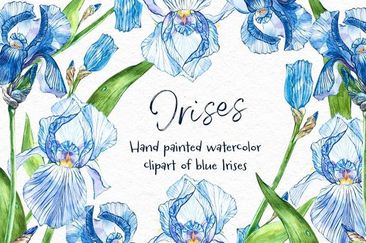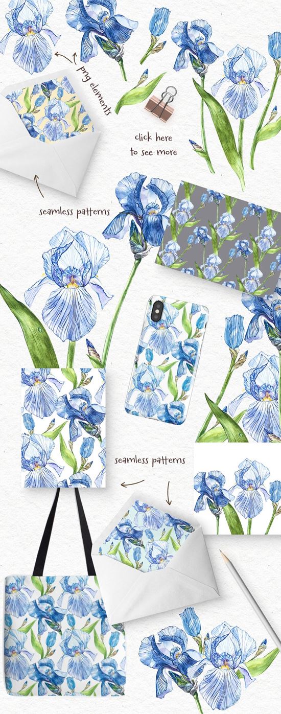 图穷联素材库 » 水彩手绘鸢尾花植物插画素材 Iris watercolor
