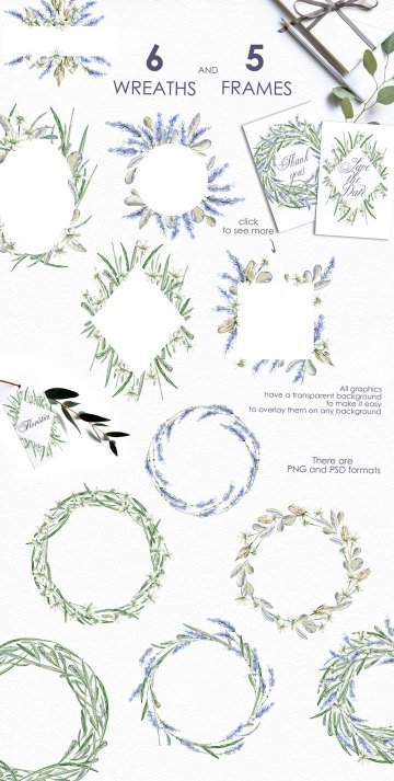 图穷联素材库 » 手绘水彩薰衣草花束花环婚礼主题剪贴画素材合辑 Lavende