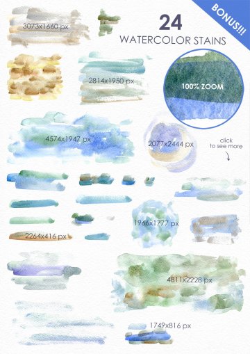 奖金!PNG格式的24种高分辨率WATERCOLOR污渍(透明背景)