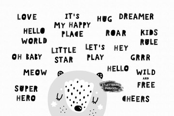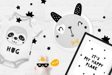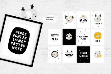 超过140种斯堪的纳维亚元素:单色动物,可爱的配饰和刻字短语。您还将获得10个无缝模式和12个用于幼儿园或游戏室的幼儿园海报(包括黑色和白色字母)。