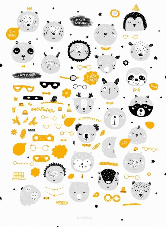 这套产品正是您需要的童装,幼儿园墙饰,儿童用品和房间装饰所需要的。根据您的喜好创建自己的斯堪的纳维亚版画,混合搭配元素!