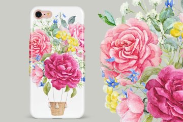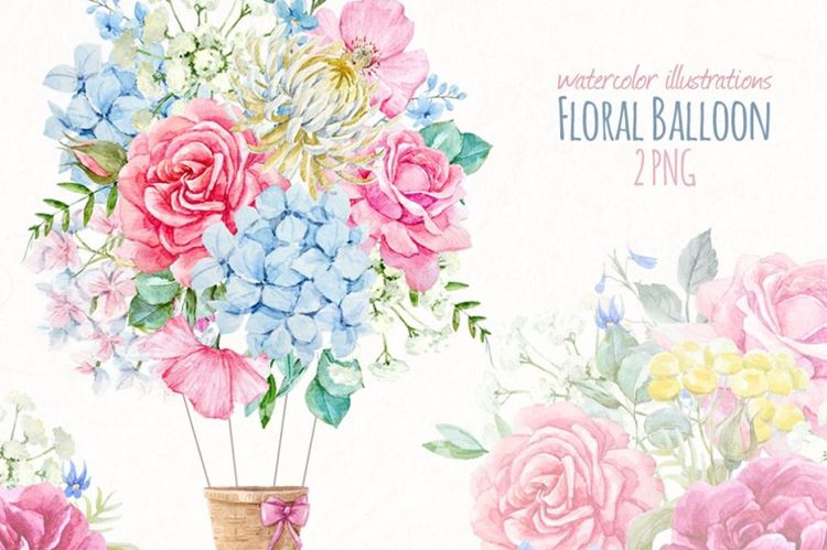 图穷联素材库 » 水彩手绘花卉热气球剪贴画素材 Watercolor Air