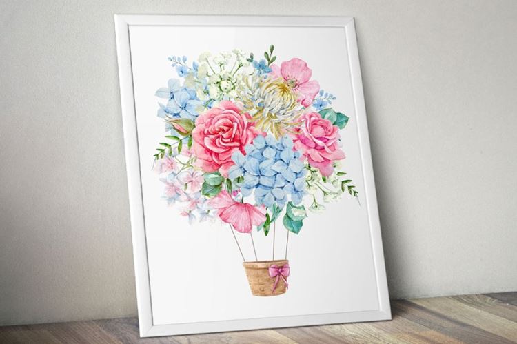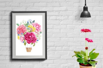 水彩手绘花卉热气球剪贴画素材 Watercolor Air