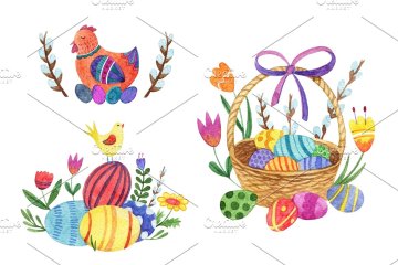 高质量水彩手绘复活节元素合辑 Watercolor brig