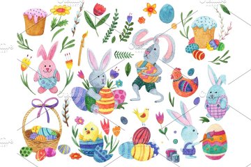 图穷联素材库 » 高质量水彩手绘复活节元素合辑 Watercolor brig