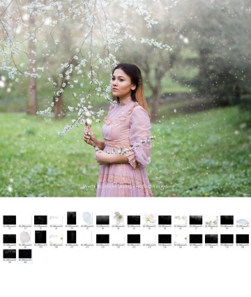 -34 张白花春天的图片叠加层,PNG和JPG文件[请更改屏幕的叠加层模式]