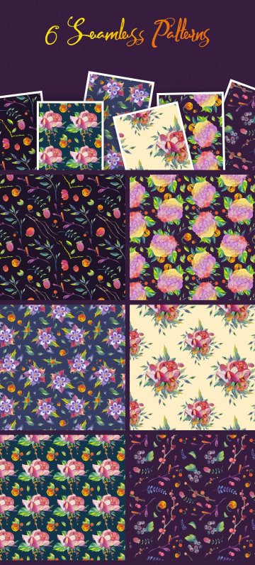 6种独特的无缝模式4000x4000(PNG,JPG,EPS)