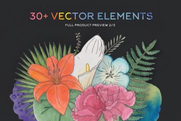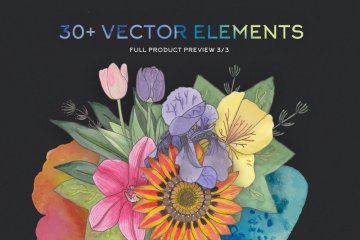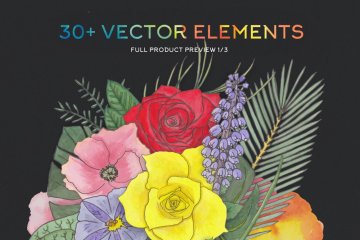 显然,由于花艺设计的潮流不会很快消失,因此现在该是时候找到合适的工具来修饰这种风格了。因此,我非常高兴为您带来FlorArt,这套工具包包含30多种水彩矢量元素,旨在成为您工具箱的重要组成部分!